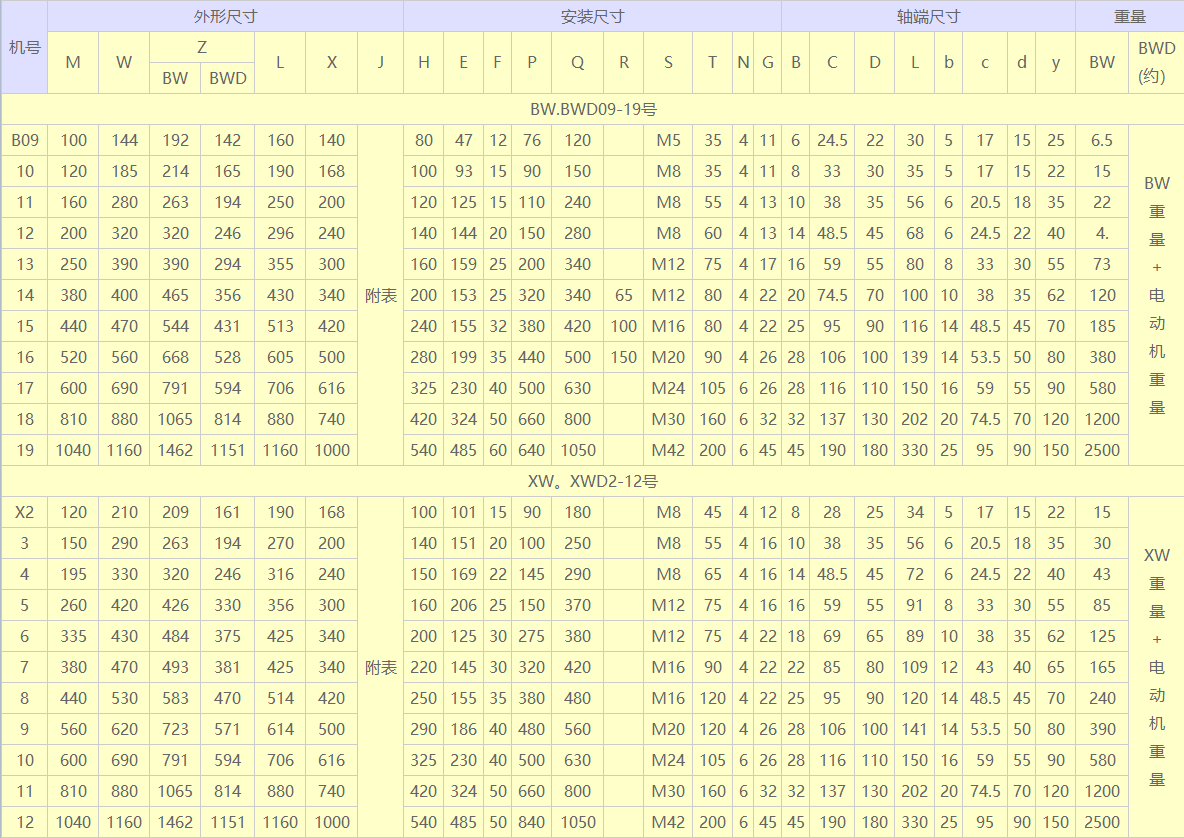 BW.BWD XW.XWD型(單級)擺線針輪減速機