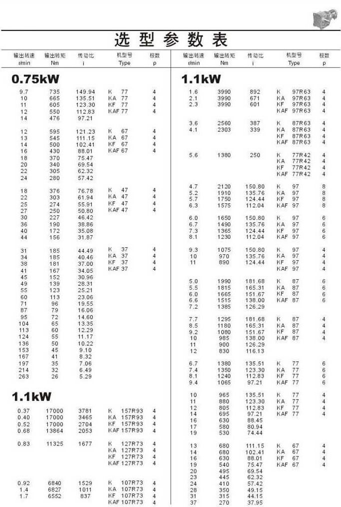 選型參數表0.75kW(續)和1.1kW