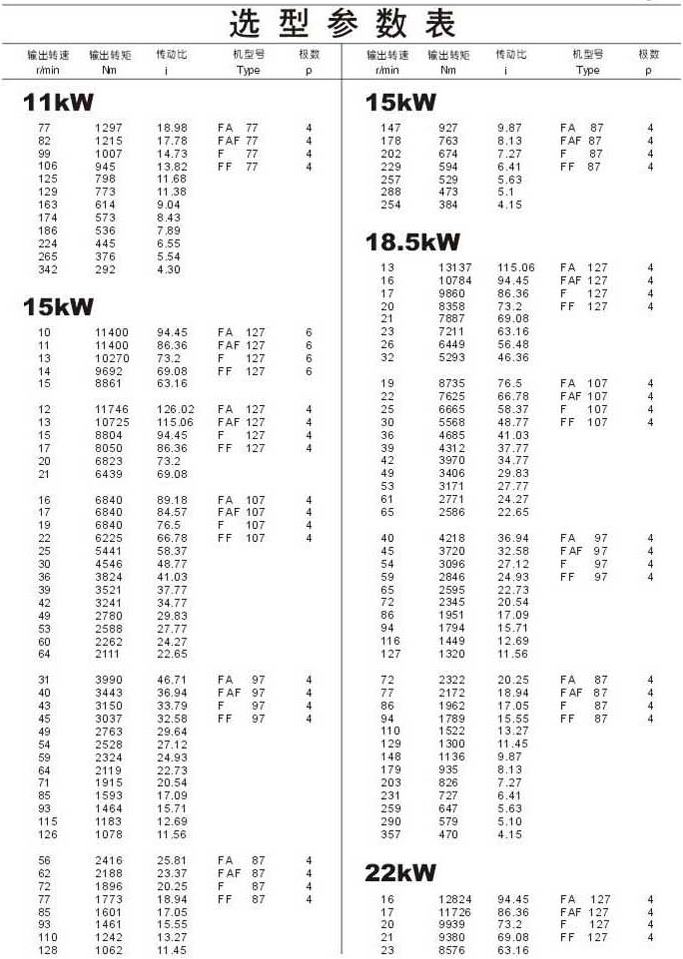 選型參數表11kW(續),15kW,18.5kW,22kW