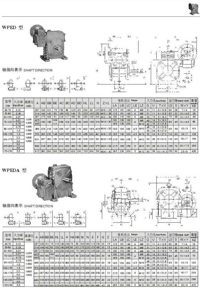 WPED,WPEDA型型號(hào)參數(shù)圖表