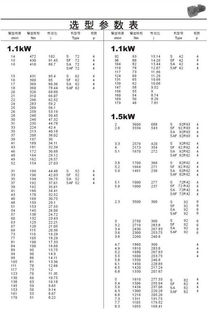 選型參數表1.1kW(續)和1.5kW