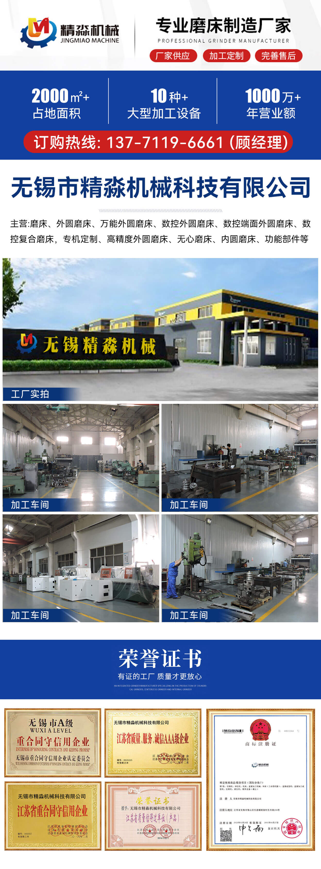 歡迎您訪問無錫市精淼機(jī)械科技有限公司官網(wǎng)!本公司主要產(chǎn)品有:磨床,外圓磨床,萬能外圓磨床,數(shù)控外圓磨床,數(shù)控端面外圓磨床,數(shù)控復(fù)合磨床,專機(jī)定制,高精度外圓磨床 !